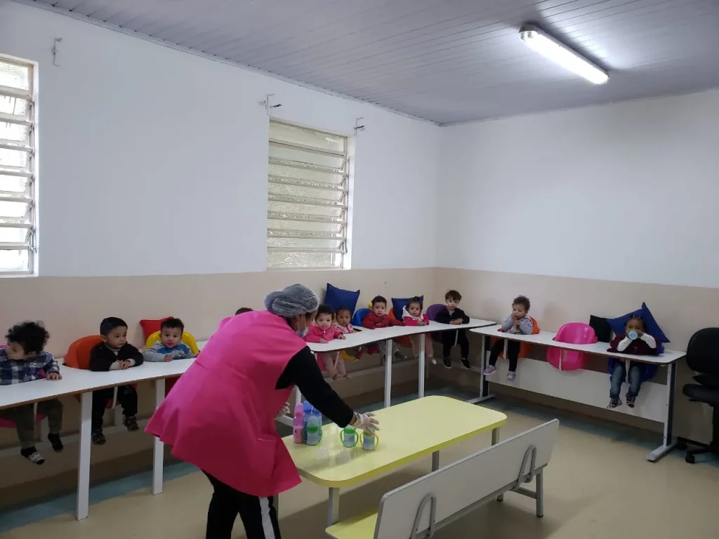 6. Ciências – Estimulação dos cinco sentidos: tato, audição, visão, olfato e paladar. Desenvolver a capacidade de auto-higiene; incentivar a criança os cuidados que devemos ter com a natureza; atividades de nomear e reconhecer animais; propiciar o contato com pequenos animais e plantas; conhecimento do próprio corpo por meio do uso da exploração de suas habilidades físicas, motoras e perceptivas; participação ativa das professoras e das crianças no plantio da horta na área verde da creche.