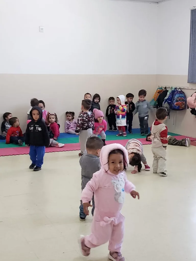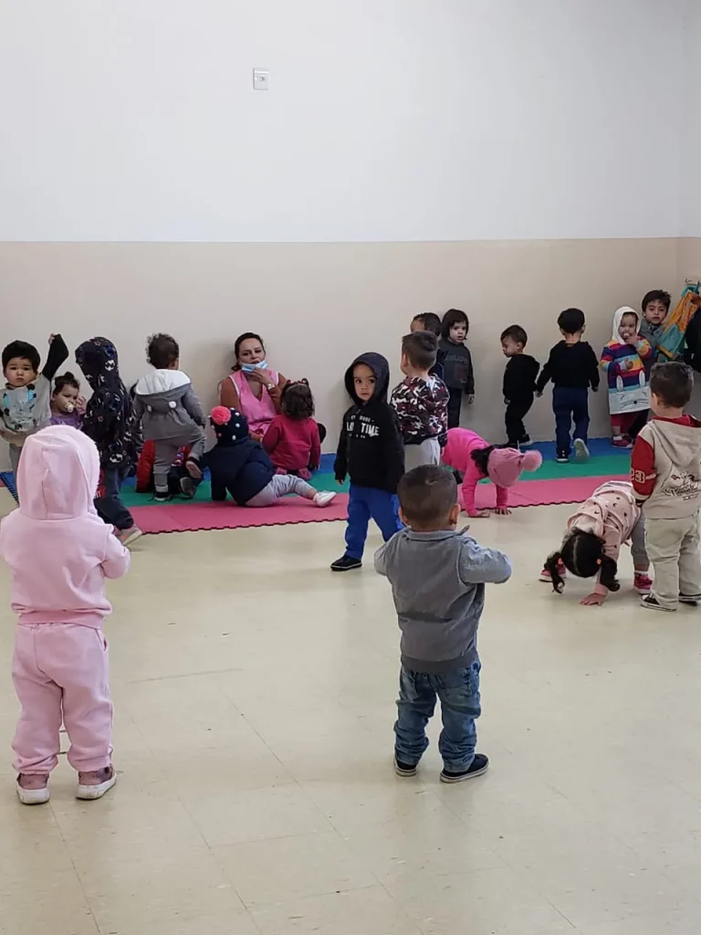 5. Movimento (Educação Física) – As crianças são incentivadas a explorar os diferentes desafios oferecidos pelo espaço por meio de movimentos coordenados básicos (como andar, correr, saltar, saltitar, pular, subir, equilibrar-se, dançar, etc.) valorizando brincadeiras que envolvam simultaneamente o canto e o movimento.